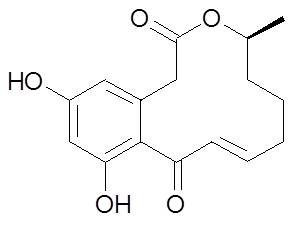 10,11-Dehydrocurvularin is a 12-membered benzenediol lactone (BDL) macrolide produced by diverse fungal species as a secondary metabolite. It selectively inhibits NLRP3 inflammasome activation by interfering with the NEK7鋒LRP3 interaction, resulting in reduced caspase-1 activation and diminished IL-1? secretion. The C=C double bond at positions 10,11 is essential for its inflammasome inhibitory activity. Beyond anti-inflammatory effects, 10,11-dehydrocurvularin exhibits cytotoxic and antitumor activities, making it a valuable scaffold for inflammasome biology and inflammation-related drug discovery.