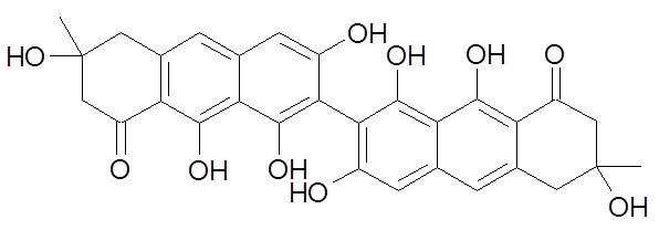 (-)-Flavomannin A Fungal anthranoid pigment with antiproliferative activity and relevance as an antiplasmodial-related scaffold.